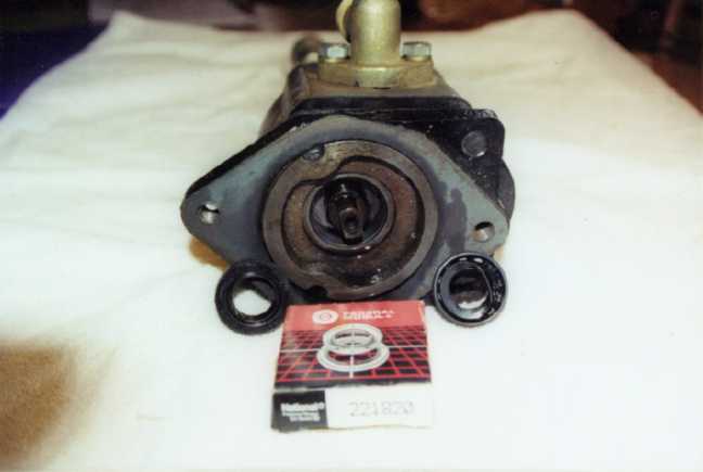 The above happened to a new Jinma owner. Here is what happened. Under full FEL load and vibration, the quick disconnect hydraulic line popped off. The pressure in the pump quickly blew the seal (see picture below), and started pumping hydraulic oil into the engine. In this case it was still the Chinese 30 weight oil. The crankcase became over filled, and the engine started dieseling on its own oil. |