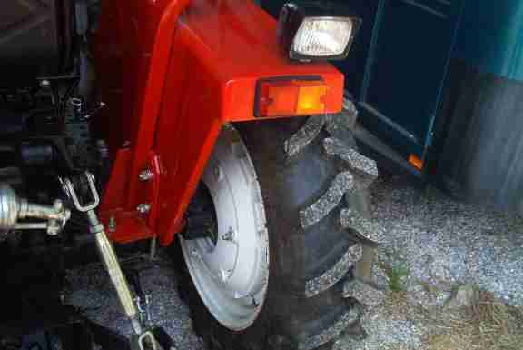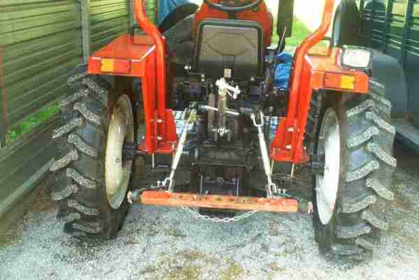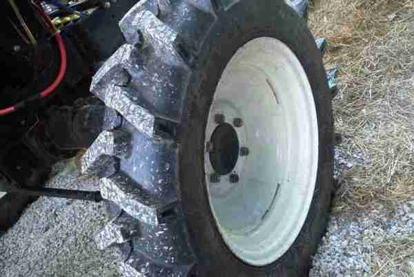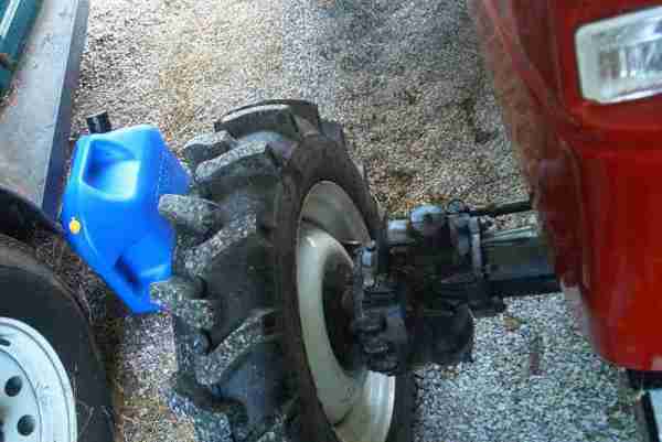 The Jinma 200 series, like many tractors, has a number of widths you can set your wheels to. Below, a Jinma owner from West Virginia sets the wheels to their widest position. This will give the tractor the most stable footprint, especially helpful for hilly terrain. As with everything, there are some tradeoffs which include a wider turning radius, exposore of front hubs, and more stress on the bearing and axle components. |